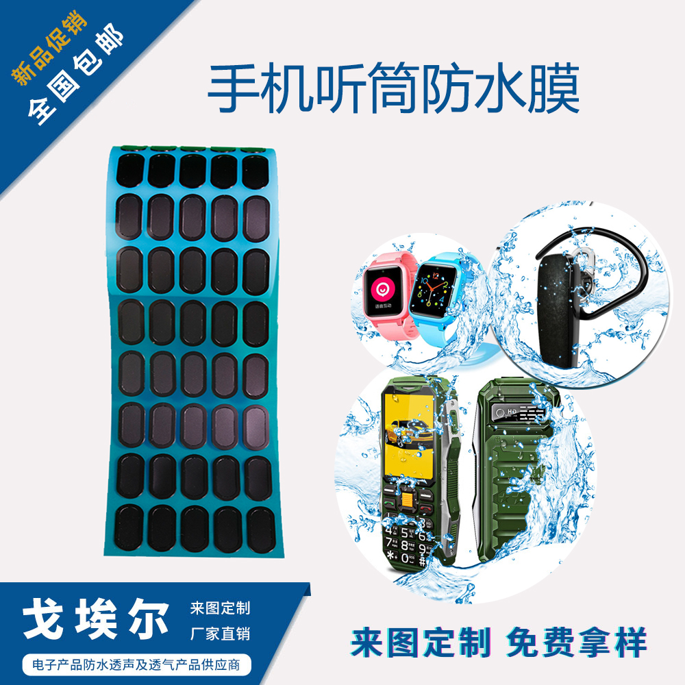 手機聽筒防水膜又稱防水透聲膜,是一種聚酯材料經(jīng)過特殊工藝加工而成的,具有很強的拉伸性,是一款比較好的透音功能性薄膜材料,從名稱中便可得知防水透音膜具有防水以及透聲作用。透音是通過聲波傳入薄膜振動傳輸出來的。Goel防水透聲膜具有防水防塵、通音透音、聲損低等作用,根據(jù)應(yīng)用的電子元件來說有喇叭防水透聲膜、聽筒防水透聲膜、MIC防水透聲膜、揚聲器防水透聲膜、麥克風(fēng)防水透聲膜、對講機防水透聲膜、音箱防水透聲膜、受話器防水透聲膜、蜂鳴器防水透聲膜、耳機防水透聲膜、智能穿戴防水透聲膜等聲學(xué)設(shè)備所用的防水透音膜。